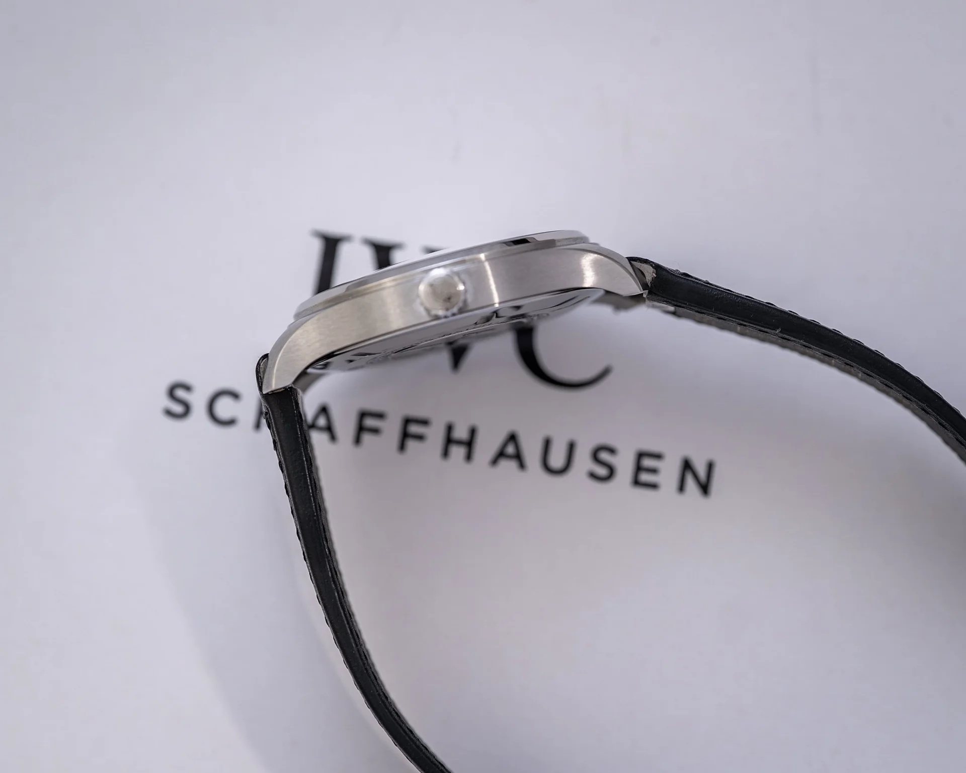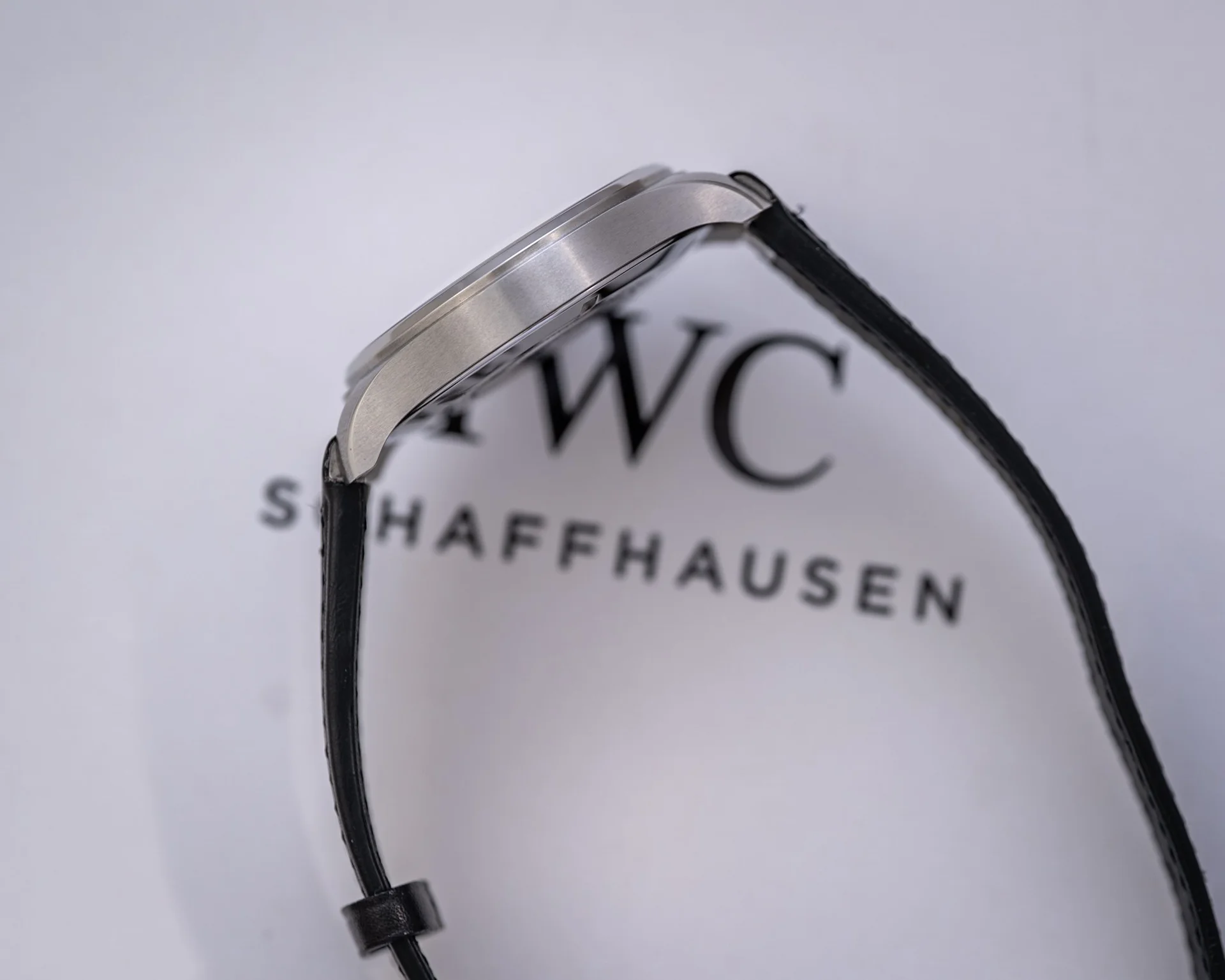 IWC’s classic pilot-style layout ensures optimal readability at any angle. Large Arabic numerals, a clean date window, and anti-reflective sapphire glass make this watch a functional companion in real-world and cockpit-inspired settings.