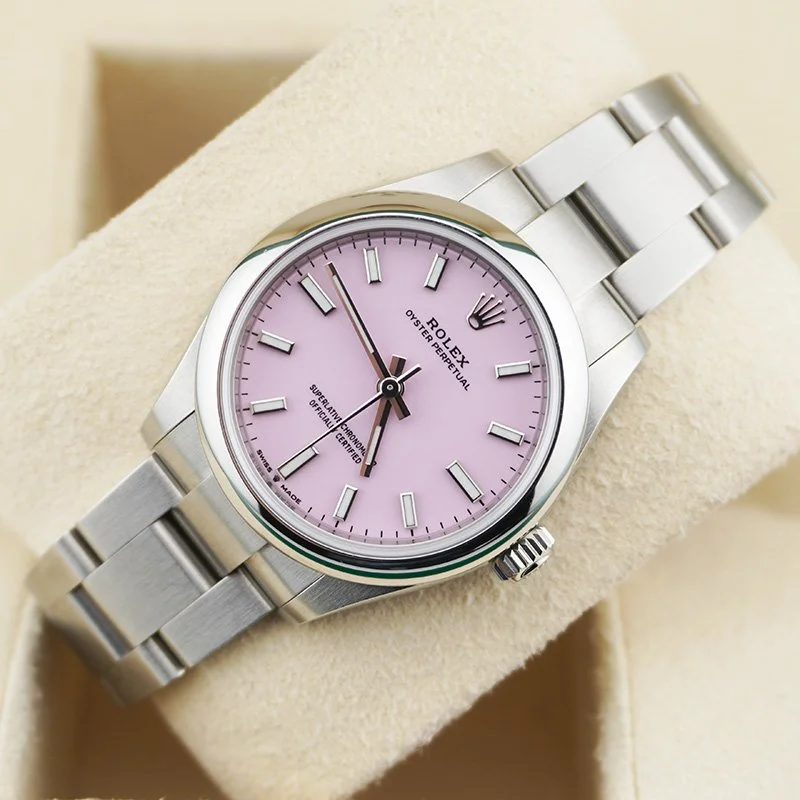 Crafted from premium stainless steel and powered by Rolex’s celebrated Perpetual self-winding movement, this timepiece blends everyday versatility with luxury appeal. Whether you are stepping into a boardroom or enjoying a casual outing, the Oyster Perpetual delivers effortless style that never fades.