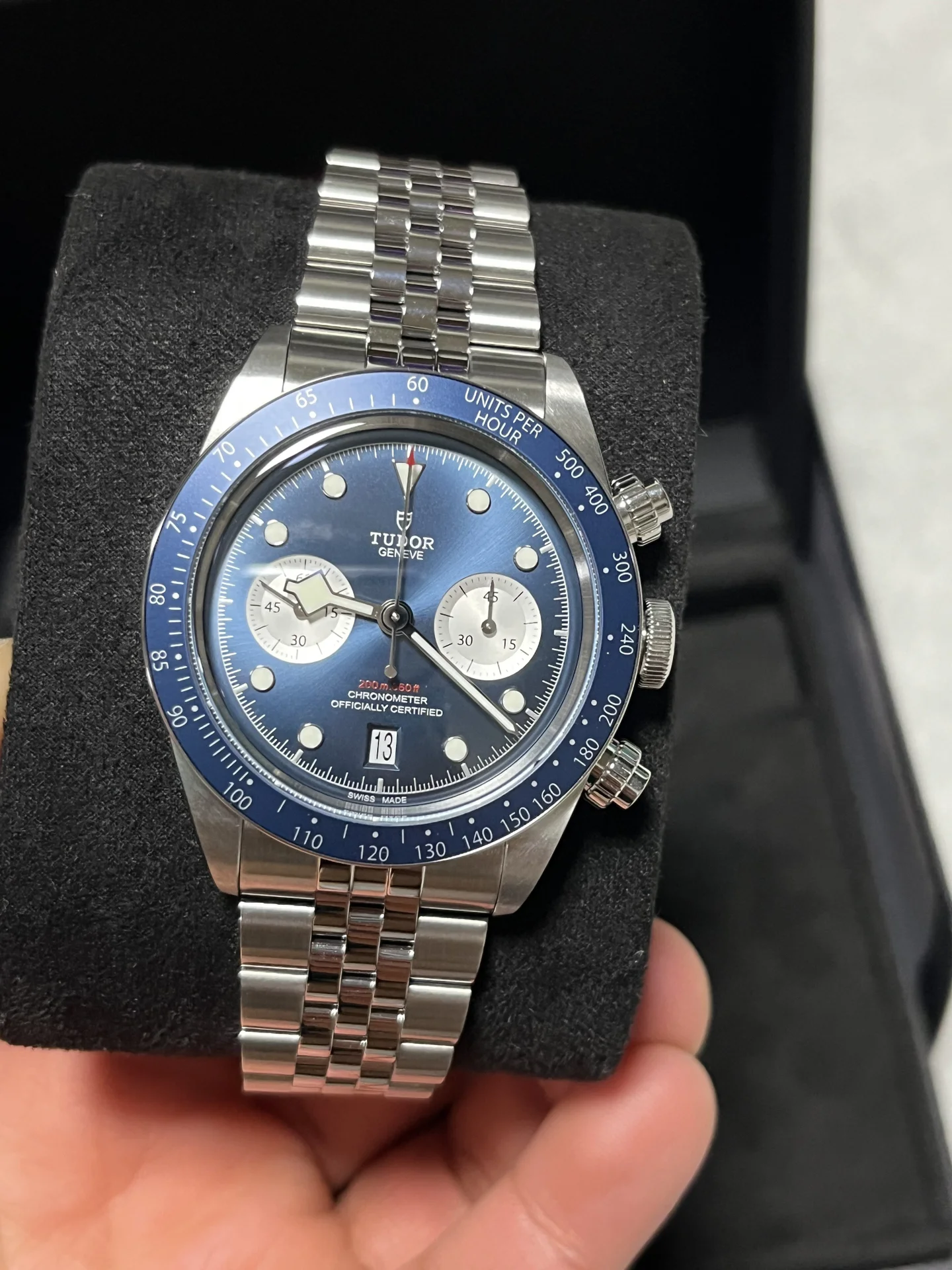 It combines the classic Black Bay dive-watch look with a high-performance chronograph movement, offering the best of both worlds.